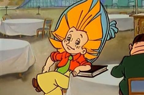 Описание: Слишком обидчивый майский жук решил как следует проучить Незнайку, невзначай обидевшего его накануне. Смышленое насекомое, улучив момент, налетает на мальчика и сильно ударяет его по голове, после чего преспокойно удаляется по своим делам.