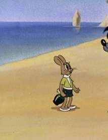Описание: Грозного облика волк, который больше напоминает преступника, проводил свое свободное время в тире, он стрелял из ружья, и из всех имеющихся мишеней он выбрал зайчиков. Ну вот не любит он зайцев, а почему – неизвестно. Когда серый вышел на улицу, он заметил, что мама-зайчиха отправилась в магазин, а свою коляску с малышом она поставила возле входа. Волк не стал долго раздумывать. Он просто угнал эту коляску с ребенком и убежал, куда глаза глядят. Зайчонок ни на шутку перепугался, и, когда бандит вез его на бешеной скорости , он просто открыл люк при помощи зонтика, который ему дала мама по счастливой случайности.